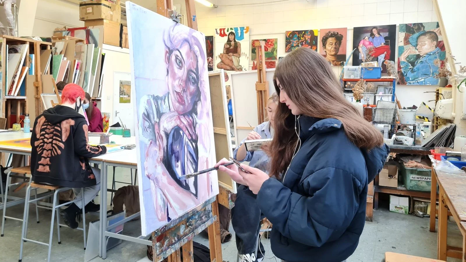 In Year 2, you’ll extend your technical skills and focus on more ambitious, self-directed projects. You’ll negotiate your individual subjects of study with your tutor, deepening your engagement with both practical and critical research. You will also be encouraged to work on large-scale pieces in two or three dimensions. In the second half of the year, you’ll have the opportunity to demonstrate your artistic development in an externally set assignment, showcasing your ability to record observations, respond to existing art, and produce your own high-level creative work. A final exhibition will mark the culmination of your Year 2 work, giving you the opportunity to present your portfolio to the public.