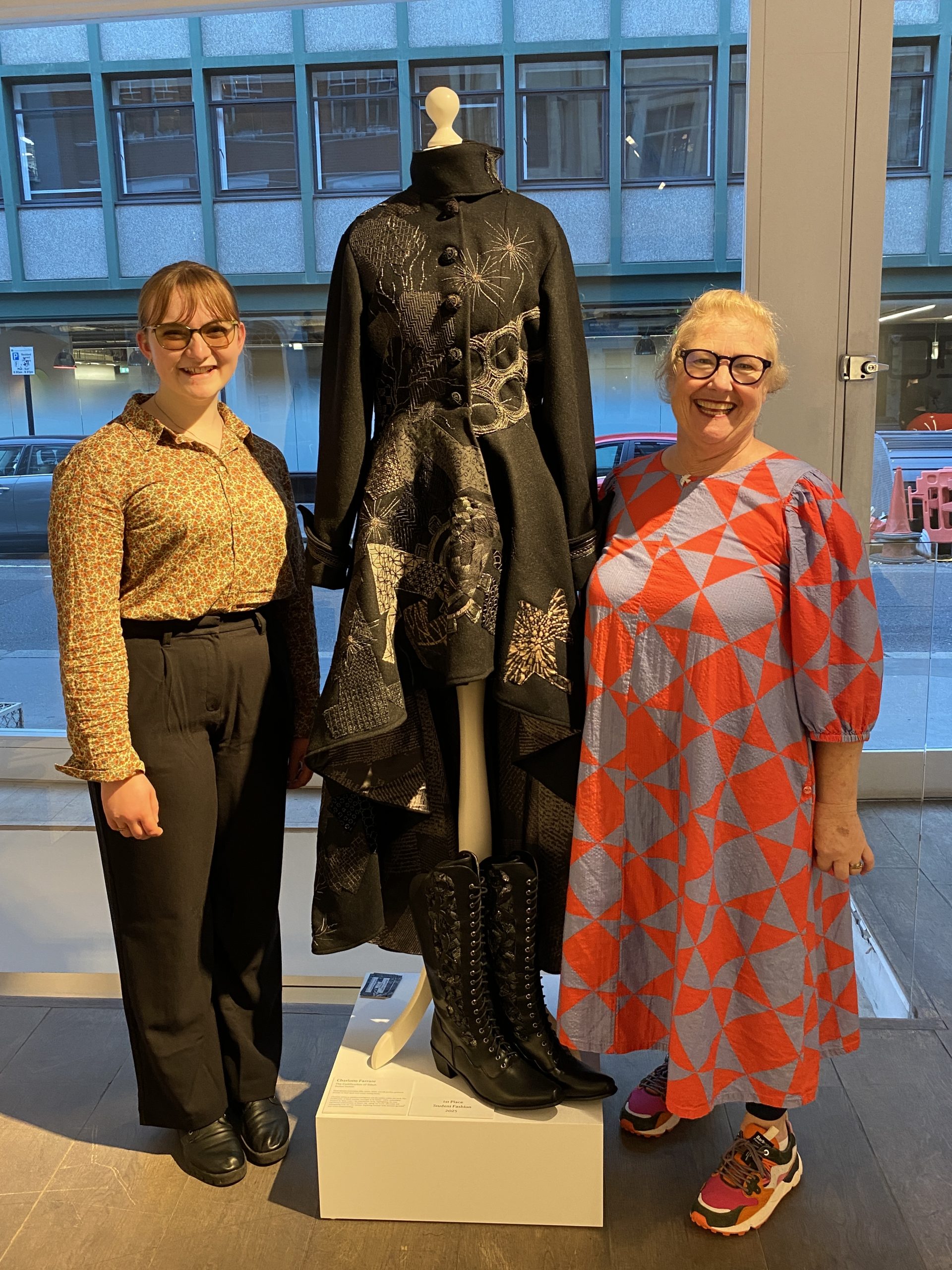Charlotte’s design took 741 hours to make with 14-16 hour long days and her former tutors, Gail Eastwood (pictured with Charlotte), Jill Hurst and Helen Brewer, could not be more proud.